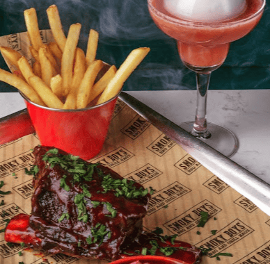 Smoky Boys is a casual BBQ and grill joint famed for bold flavours and juicy Angus beef burgers. The menu includes brisket, ribs, wings, dogs and veggie options. Their Wandsworth branch also highlights halal, gluten-free and vegetarian choices.